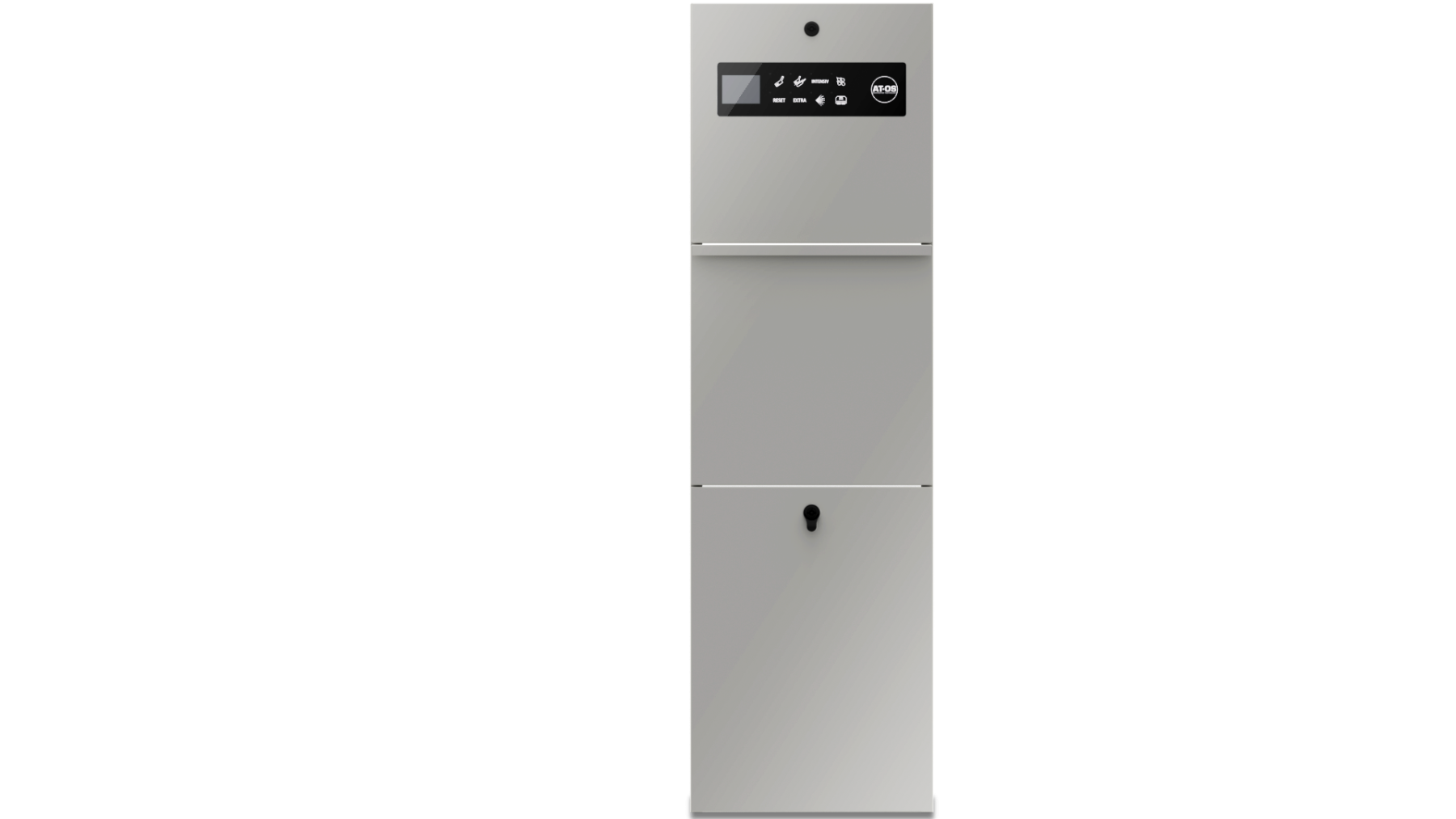 The AF2.45MG model is equipped with a manual stainless steel door and internal steam generator. It can also be built into the wall with an assembly frame, and have small components for fixing the toilet and connection for drainage. This allows the machine to be placed even inside the